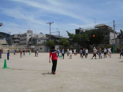 外遊びができるときは,みんなでドッジボールを楽しみました。みんなで遊んだり楽しんだりすることが大好きな6年生,5年生のときよりさらに仲が良くなっているように感じます。