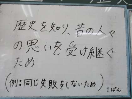 なぜ歴史を学ぶのか,過去のことが今や未来に関係があるのか,子どもたちは一生懸命考えていました。6班ありますので,半分を紹介します。