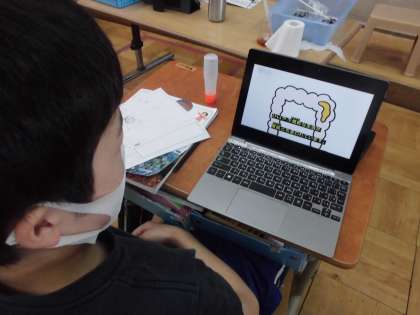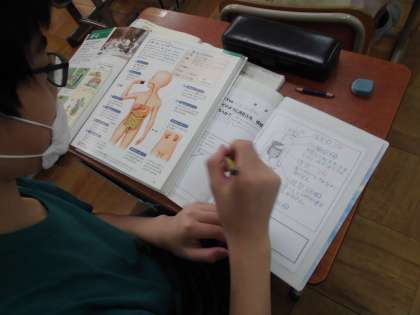 まずは,教科書でテーマに沿った内容を調べる⇒その後,GIGA端末の動画でイメージをつかみ,⇒図鑑や人体模型を見ながらイラストを描いてノートにまとめていく・・・というように,自分にとって調べやすいスタイルが作られつつあります。