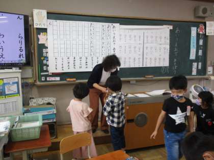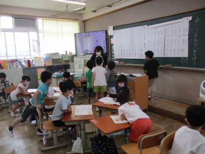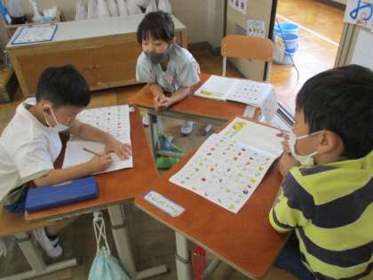 1年生は,ことばあそびうたをグループごとに考えていました。