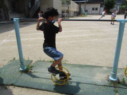 三角竹馬もローリングペダルも,始めはなかなかうまく乗り