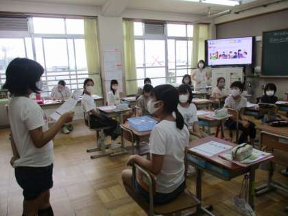 5年生の家庭科は,交換授業で6年の担任が指導しています。