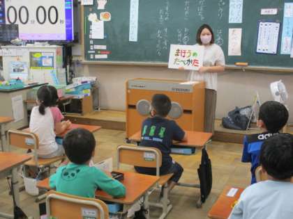 1年生は,栄養教諭の笘篠先生から,栄養指導をしてもらいました。