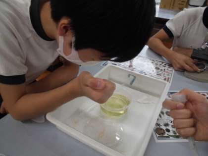 6年生理科で,プランクトンのたくさんいそうな素敵な水が手に入ったので,少し単元を入れ替えて,プランクトンの観察をしました。(プランクトンとお寿司は鮮度が大切です)