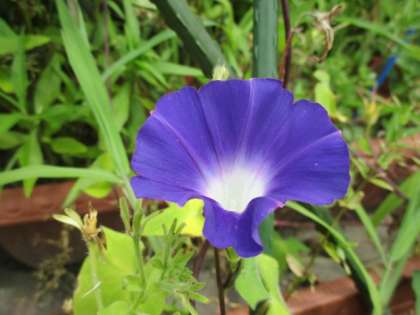 今日,学校園を見まわして,一輪のアサガオを見付けました。