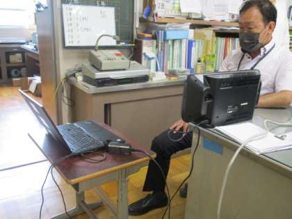 そこで,Zoomはあきらめて,私が作成したプレゼンを教室のテレビで映してもらって,
