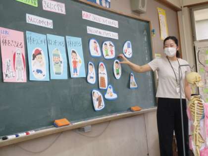 計測の前に,保健室の先生から筋肉のことについて学びました。