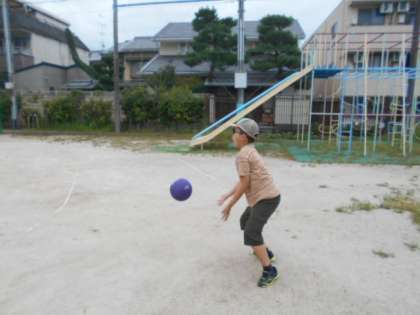2学期からはそれに加えて,ボールの受け渡しを始めました。ノーバウンドで10回キャッチすることを目標に頑張っています。