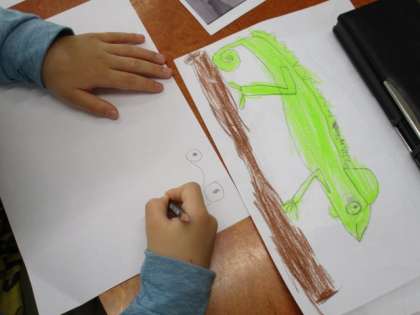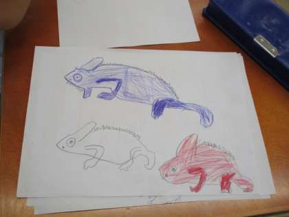 今年度の「お話の絵」はカメレオンが出てくるお話です。