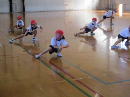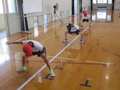 「キッズソーラン」は腰を低くして,リズムに乗るのが大切ですね。