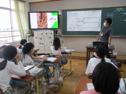 5年生は,先日流れる水のはたらきのモデル実験をしました。