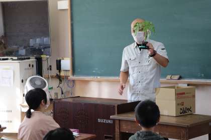 最初に,こんにゃく工場の方に学校に来てもらって,