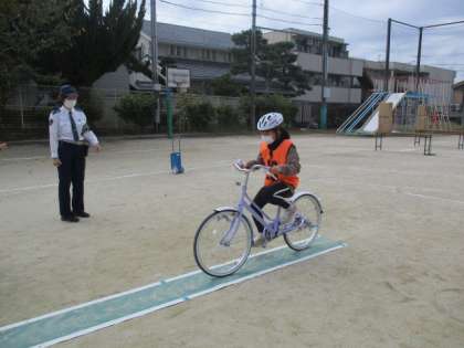 伏見警察署に協力をいただき,自転車教室を行いました。