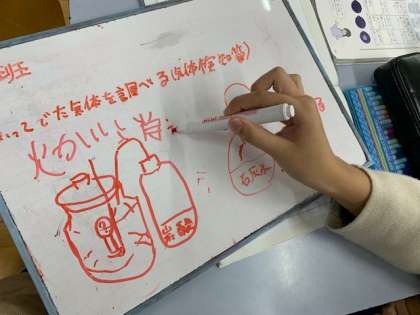 ホワイトボードを渡すと,どのグループも熱心に実験方法を考えてくれました。