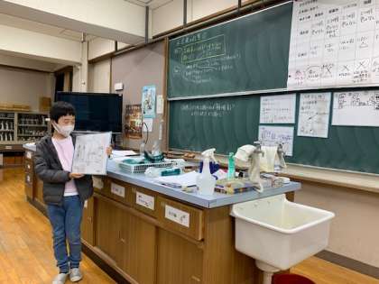 先週,5種類の水よう液の見た目やにおい,熱した後を調べた子どもたち。