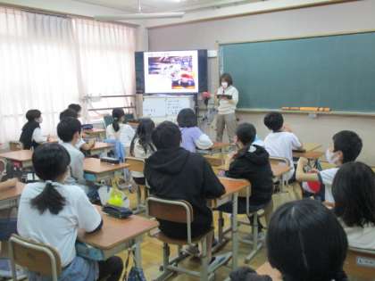 6年生の教室に行くと,修学旅行の写真を見ながら,