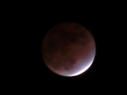 校庭から東の低い空に,暗く陰った月食を観測することができました。めったに遭遇できない天体ショーだそうです。