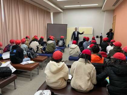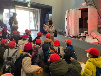 みんな熱心に見学しています。地震体験もしました。館長さんの地震体験の話に感動していました。