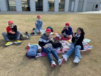 まずは、お弁当。すごい風でお弁当のナイロンやビニールがとびまくり、苦労しました。