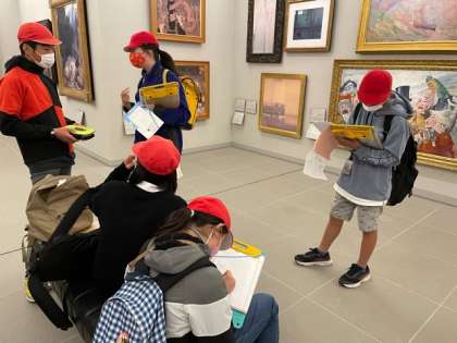 みんな名画の素晴らしさを見つけようとしています。