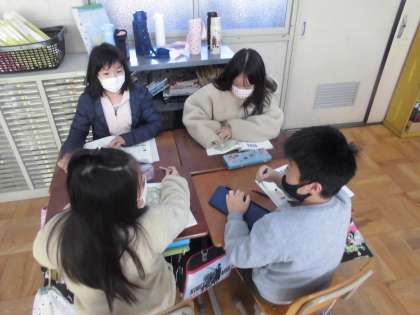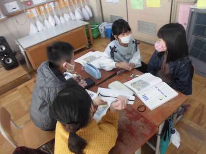 今日は,どんな物語にするといいか,教科書の挿絵を見ながら,グループで話し合ってイメージを膨らませました。