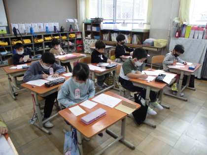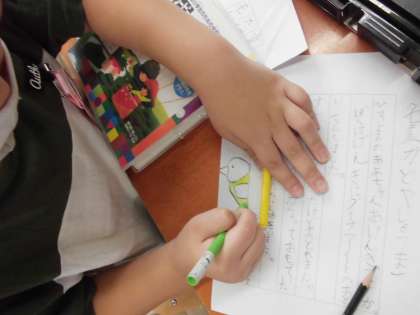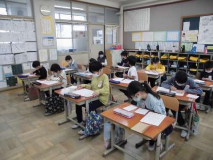 国語「てがみで しらせよう」の学習は今日がお清書でした。昨日書き上げておいた下書きのプリントを横において,真剣にお清書するみんなでした。「今書ける,最高にかっこいい字でかこう。」というめあてで取り組んだので,集中して書いていました。余白のところに自由に絵をかいてあげてもいいよと伝えると,喜んでいろいろと工夫をしてさしえを描いていました。「おばあちゃんが鳥がすきやし,とりを描いてあげる!。」と言いながら描いている子もいて,ほほえましかったです。さあ明日は,みんなでポストに入れにいきます。