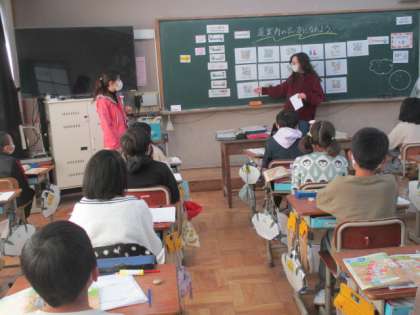 4年生は,ALTの先生と一緒に外国語の授業です。