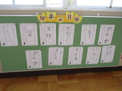 3学期になり,子どもたちは新年の抱負を兼ねて「今年の目標」を言葉一言で書きました。