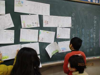 毎日の音読の宿題でも毎月詩を紹介して様々な詩に触れ合う機会を作っていますが,子どもたちもいろいろな楽しい詩を見つけて紹介していました。