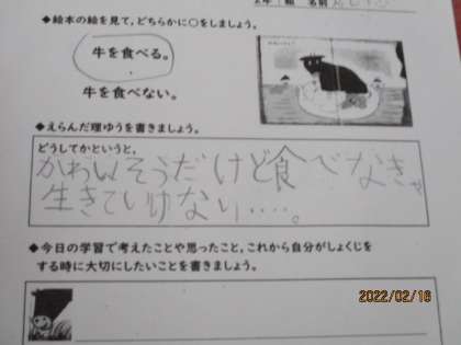 その後,あらためて,「いただきます」「ごちそうさま」は誰にいっているのかな,と話し合いました。