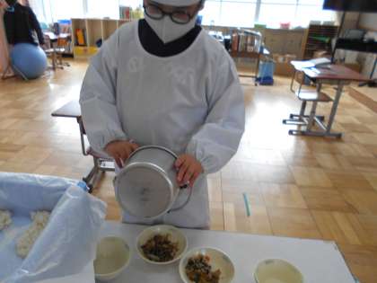 給食の準備・後片付けには,前後の見通しを持ちながら,手指の巧緻性を高める良い場なので,ほとんど自分でしています。