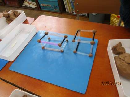 などをしっかりと学んだ後,最後のまとめとしてストローと粘土玉をつかってはこの形を作りました。