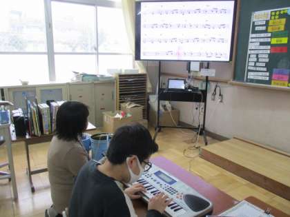 今日,教室へ行くとまた新しい曲に挑戦を始めていました。
