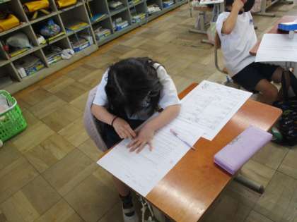 1年生の教室に行くと,作文にがんばって取り組んでいました。
