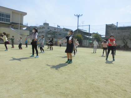 今日は運動場で6年生を送る会の練習をしました。