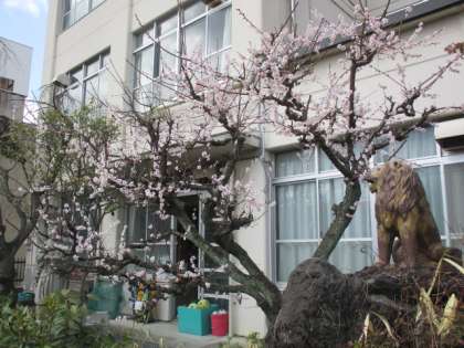 ようやく校門の梅が満開になりました。