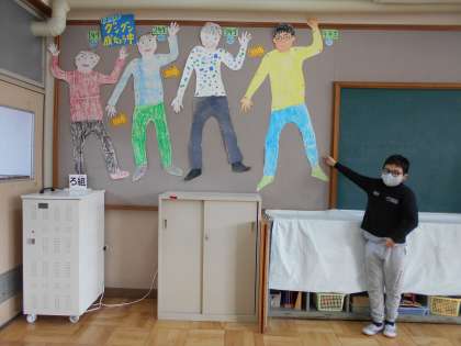 1年生のときから毎年,等身大の自分を描いて,「グングン成長中」として掲示しています。今年度も4年生の等身大の自分を描きました。枠の中の色を絵の具やクレパスで塗りました。早速,掲示しました!段々,体格や身長が成長していることがわかりますね!