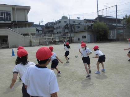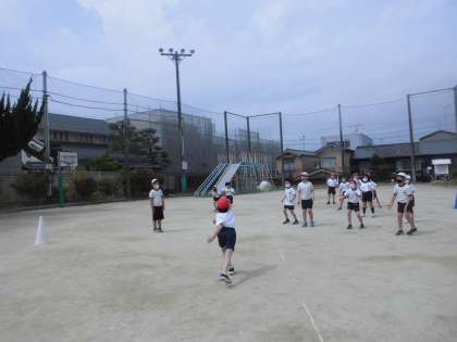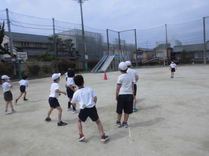 運動場に出て,元気いっぱい体を動かしました。