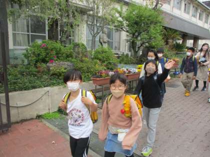 町別児童会の後は,地域委員さんと一緒に集団下校をしました。