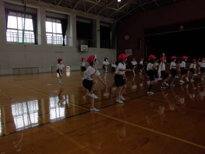1組のみんなと一緒に,1年生は体ほぐしの運動,5年生はパワーアップ体操を行いました。
