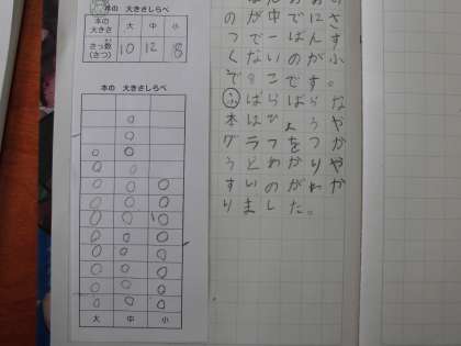 2年生になって算数はノートのかたちも少し変わりましたが,内容も新しく加わったことがあります。1時間の学習の最後に「ふりかえり」を書いていくことです。その日の学習で分かったことやできるようになったことなどを自分の言葉で書くようにします。今日で2回目。まだまだ何を書いたらいいのか悩みながらも一生懸命書いている子どもたちです。毎日こつこつ積み重ねていく中で,だんだん書けるようになっていきましょう。