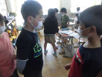 4時間目ということもあり,「I'm hungry.」と答える子が多かったです。