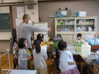 ちょうど理科の授業を準備していらっしゃった先生にもいろいろ質問をしながら,たくさんの発見ができたようです。