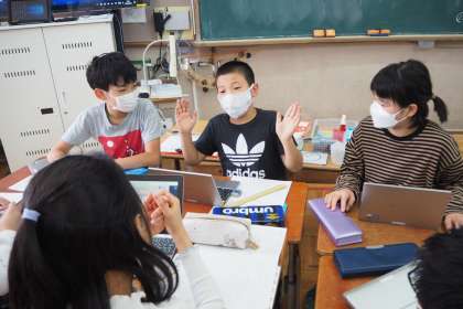 自分の考えがより伝わるようにロイロノートをつかいプレゼンをしている子どももいました。