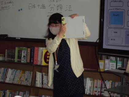 国語の教科書に出てきた「としょかんたんけん」の学習を,学校司書の佐々木先生に指導していただきました。今日の内容は「分類番号について」でした。1年生のときにも,図書館の本にはそれぞれ決まった住所があってそれが番号ですよということは教えていただいていたのですが,今日はさらにそれぞれの番号の示している意味について説明していただきました。説明のあとには,実際に「0」番の書架から確かめながら,順番に図書館を1周しました。こういう学習を通して,少しずつ自分の読みたい本が,見つけられるようになっていけるといいですね。
