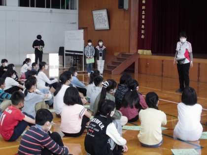 出発式では,校長先生や担任の先生のお話を真剣に聞く姿が見られました。