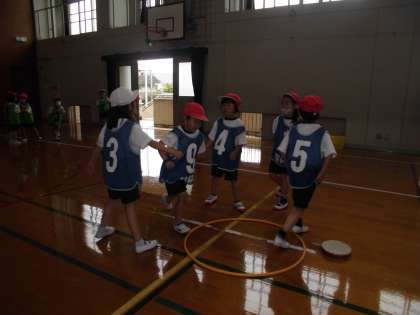 これまで,コーンの横を曲がる「くねくねリレー」とコーンの周りをまわる「くるくるリレー」を行いました。