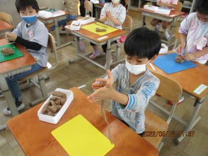 そのあと,思い思いに粘土を伸ばしていきました。