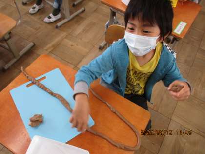 図画工作の学習では,「ひもひもねんど」という学習をしました。