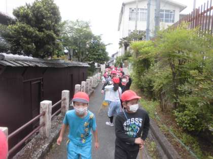 そこから,「もっと知りたい!」という思いがわいてきた子どもたち。今日の探検では,知りたいことの答えを探す・稲荷のいいところを探す・初めてのものを探すという目標をもって出かけました。
